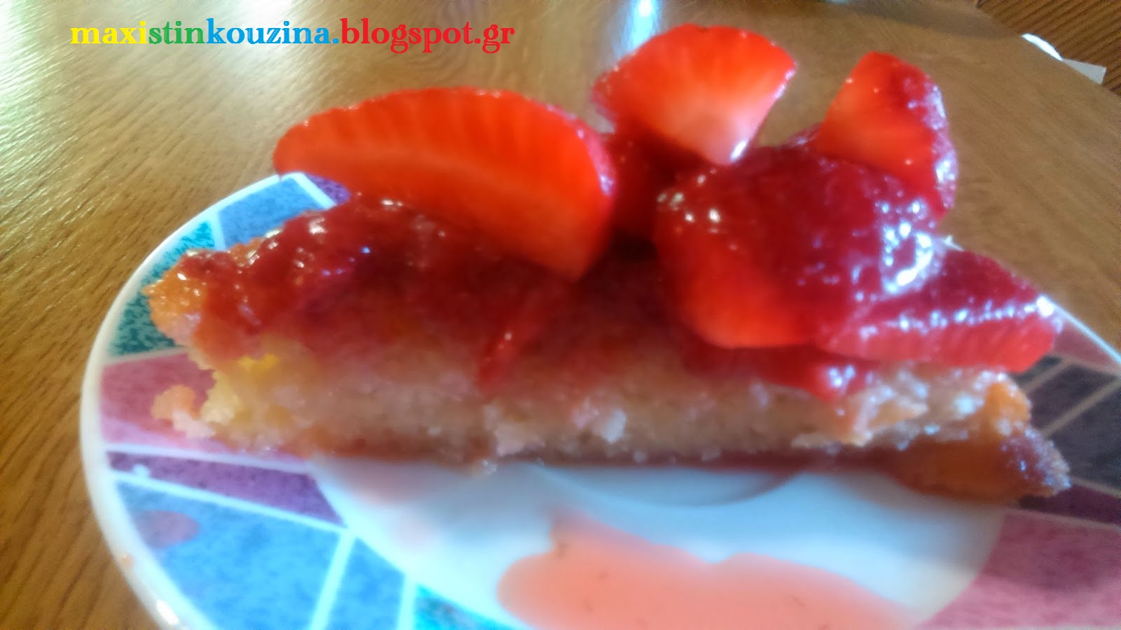 Σιροπιαστό Κέικ Με Σιμιγδάλι Και Φράουλες